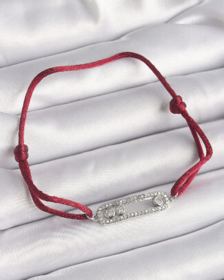 Kırmızı İpli Asansörlü Zirkon Taşlı Gümüş Messika Model Kadın Bileklik