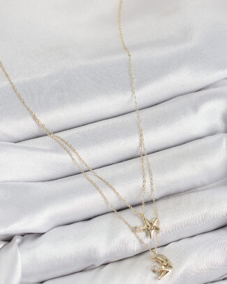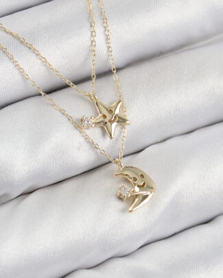 Pirinç Zirkon Taşlı Yıldız Ve Ay Model Gold Renk Kadın Kolye