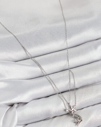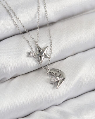 Pirinç Zirkon Taşlı Yıldız Ve Ay Model Gümüş Renk Kadın Kolye