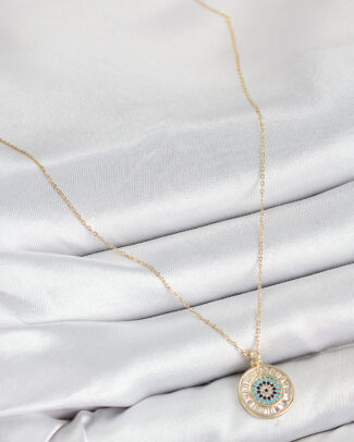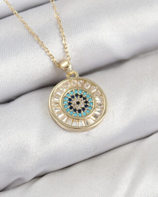 Pirinç Zirkon Taşlı Su Yolu Nazar Model Gold Renk Kadın Kolye