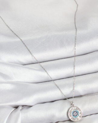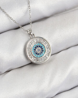 Pirinç Zirkon Taşlı Su Yolu Nazar Model Gümüş Renk Kadın Kolye
