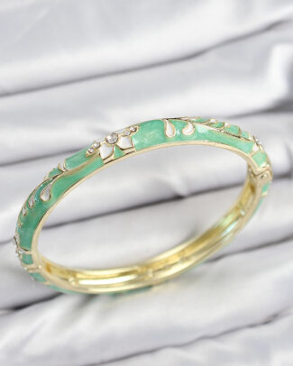 Mineli Pirinç Zirkon Taşlı Yeşil Çiçek Motifli Gold Kadın Kelepçe
