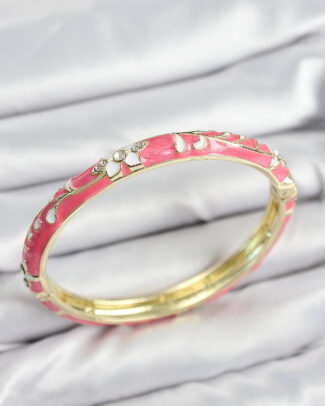 Mineli Pirinç Zirkon Taşlı Pembe Çiçek Motifli Gold Kadın Kelepçe