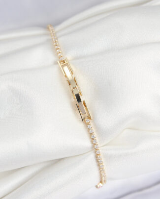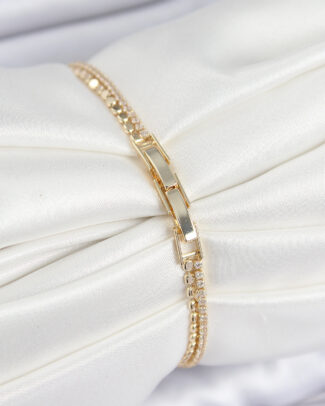 Pirinç Zirkon Taşlı Ezme Zincirli Sıralı Model Gold Renk Kadın Bilekilk