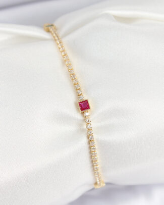 Pirinç Zirkon Taşlı Kare Model Gold Renk Kadın Bilekilk