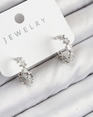 Pirinç Zirkon Taşlı Yıldız Model Gümüş Renk Kadın Küpe