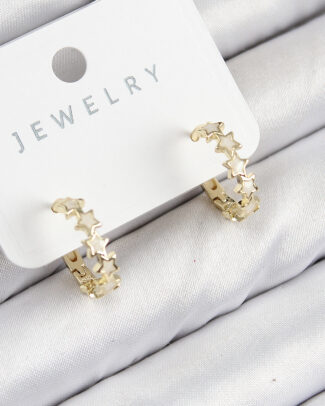 Pirinç Zirkon Taşlı Yıldız Model Gold Renk Kadın Küpe
