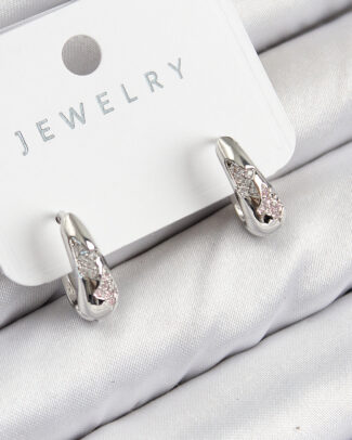 Pirinç Zirkon Taş Desenli Model Gümüş Renk Kadın Küpe