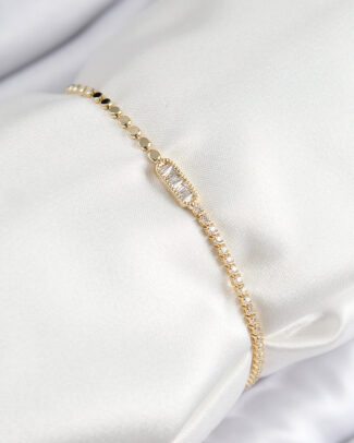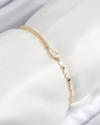 Pirinç Zirkon Taşlı Damla Model Ezme Zincir Gold Renk Kadın Bileklik