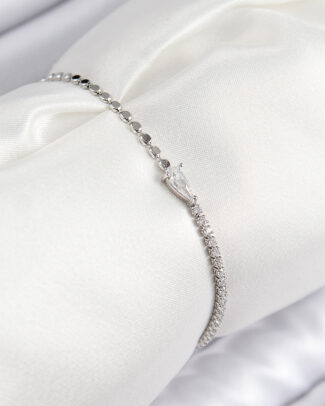 Pirinç Zirkon Taşlı Damla Model Ezme Zincir Gümüş Renk Kadın Bileklik
