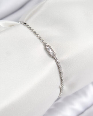 Pirinç Zirkon Taşlı Dikdörtgen Model Ezme Zincir Gümüş Renk Kadın Bileklik