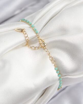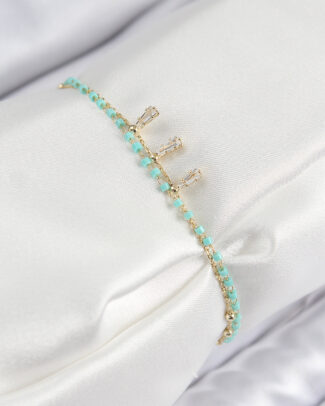 Pirinç Zirkon Taşlı Mavi Boncuklu Model Gold Renk Kadın Bileklik