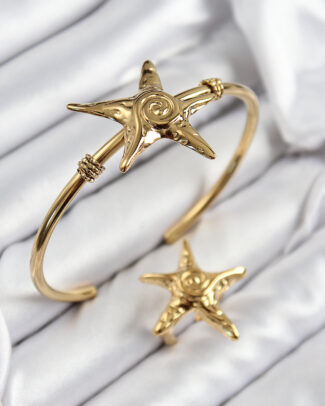 Pirinç Deniz Yıldızı Model Gold Renk Bileklik Yüzük Set