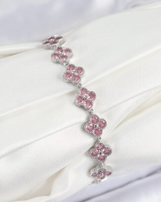 Pirinç Pembe Zirkon Taşlı Yonca Model Gümüş Renk VIP Seri Kadın Bileklik