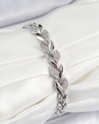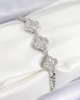 Pirinç Zirkon Taşlı Yonca Model Gümüş Renk Kadın Bileklik