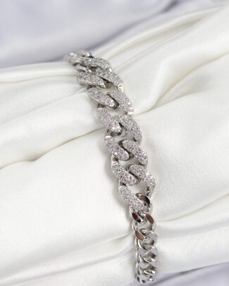 Pirinç Zirkon Taşlı Küba Zincir Model Gümüş Renk Kadın Bileklik