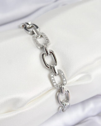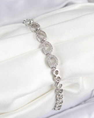 Pirinç Zirkon Taşlı Parçalı Zincir Model Gümüş Renk Kadın Bileklik