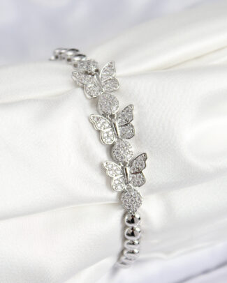 Pirinç Zirkon Taşlı Kelebek Model Gümüş Renk Kadın Bileklik