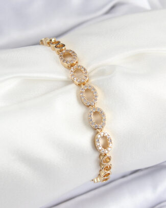 Pirinç Zirkon Taşlı Oval Model Gold Renk Kadın Bileklik