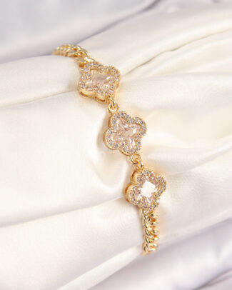 Pirinç Zirkon Taşlı Yonca Model Gold Renk Kadın Bileklik