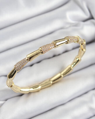 Pirinç Zirkon Taşlı Kemik Model Gold Renk Vip Kadın Bileklik
