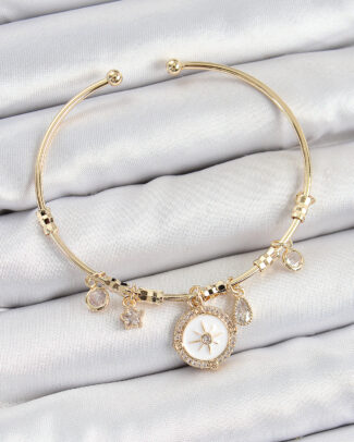 Pirinç Zirkon Taşlı Pusula Model Gold Renk Charm Bileklik