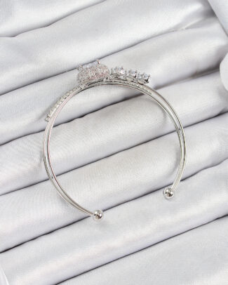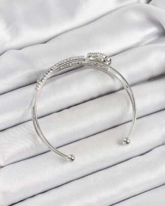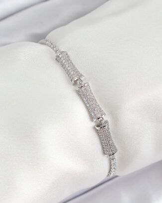 Pirinç Gümüş Renk Zirkon Taşlı Kemik Model Kadın Bileklik