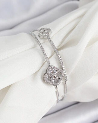 Pirinç Gümüş Renk Zirkon Taşlı Yonca Model 2’li Kadın Bileklik