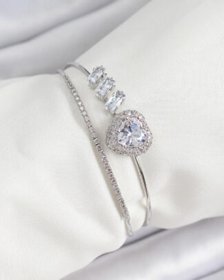 Pirinç Gümüş Renk Kalpli Zirkon Taşlı Kadın Bileklik