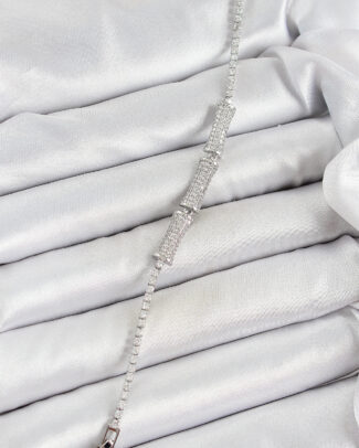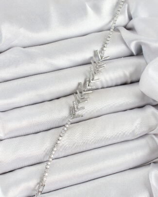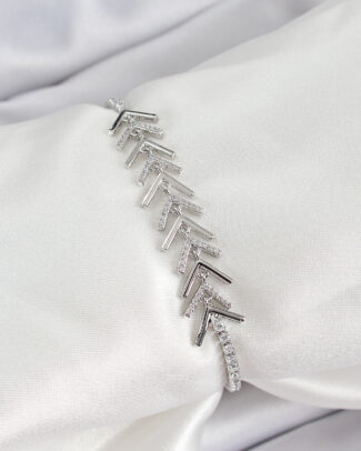 Pirinç Gümüş Renk Zirkon Taşlı Balık Sırtı Kadın Bileklik