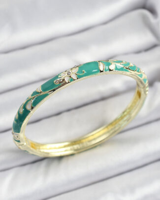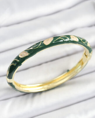 Mineli Pirinç Gold Renk Yeşil Çiçek Motifli Kadın Kelepçe