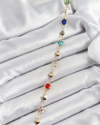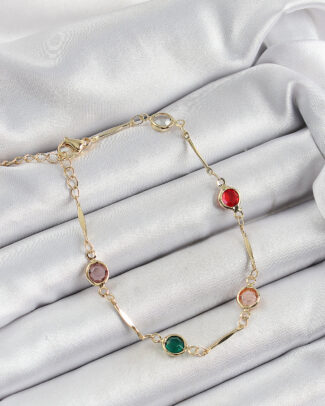 Pirinç Karışık Renk Zirkon Taşlı Gold Renk Kadın Bileklik