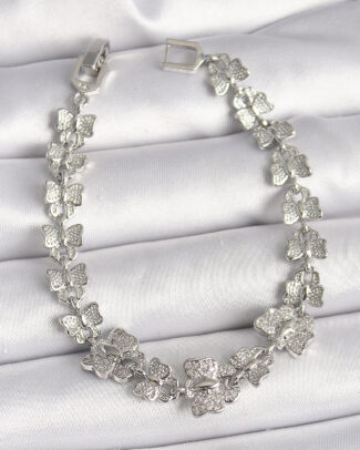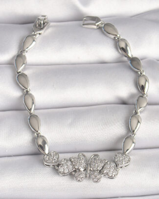 Pirinç Gümüş Renk Zirkon Taşlı Kelebek Model Zincir Kadın Bileklik
