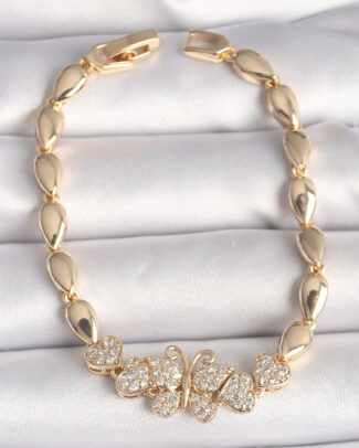 Pirinç Gold Renk Zirkon Taşlı Kelebek Figür Damla Zincir Model Kadın Bileklik