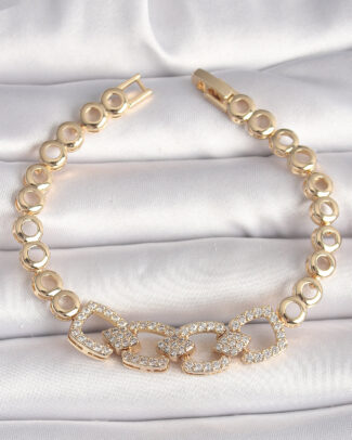 Pirinç Gold Renk Zirkon Taşlı Daire Zincir Model Kadın Bileklik