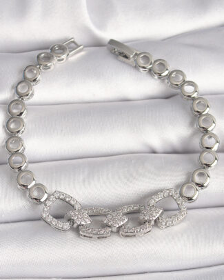 Pirinç Gümüş Renk Zirkon Taşlı Daire Zincir Model Kadın Bileklik