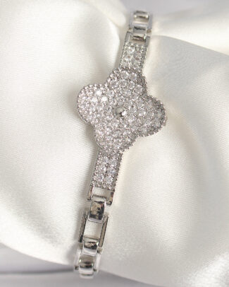 Pirinç Gümüş Renk Zirkon Taşlı Yonca Model Kadın Bileklik