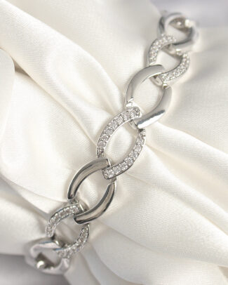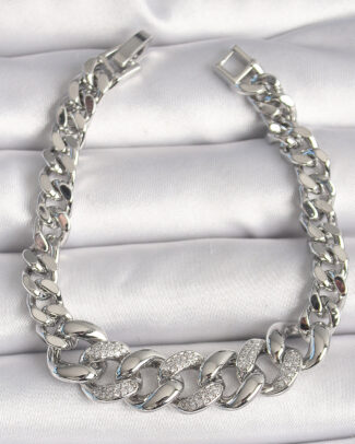 Pirinç Gümüş Renk Zirkon Taşlı Oval Zincir Model Kadın Bileklik
