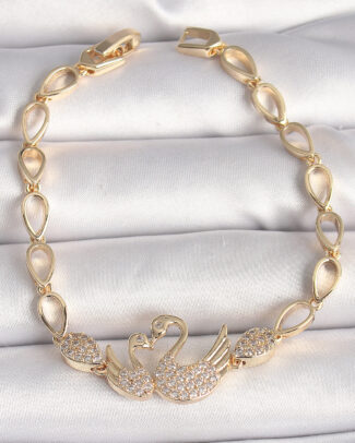 Pirinç Gold Renk Zirkon Taşlı Kuğu Figür Damla Zincir Model Kadın Bileklik