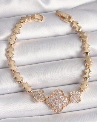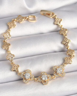 Pirinç Gold Renk Zirkon Taşlı Yonca Model Kadın Bileklik