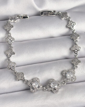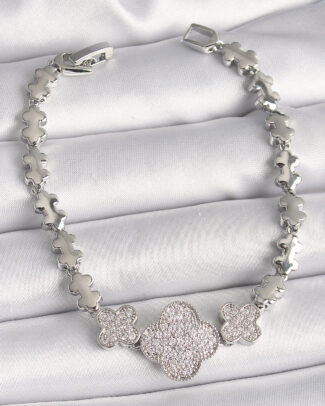 Pirinç Gümüş Renk Zirkon Taşlı Yonca Model Kadın Bileklik