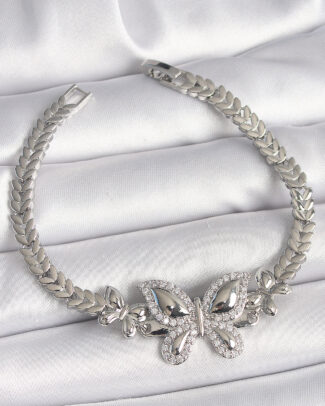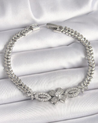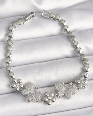 Pirinç Gümüş Renk Zirkon Taşlı Kelebek Figür Çiçek Zincir Model Kadın Bileklik