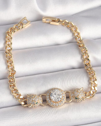 Pirinç Gold Renk Zirkon Taşlı Leopar Figür Zincir Model Kadın Bileklik