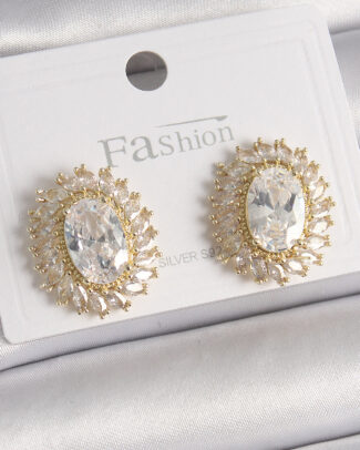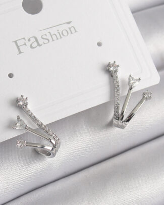 Pirinç Gümüş Renk Zirkon Taşlı Kadın Küpe