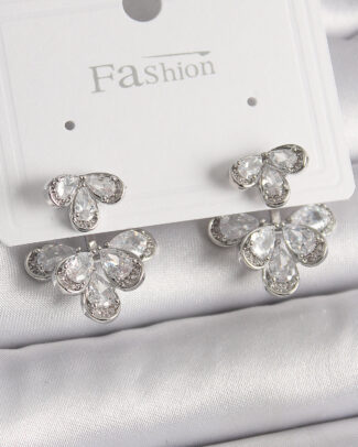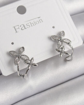 Pirinç Gümüş Renk Zirkon Taşlı 2’Li Çiçek Model Kadın Küpe