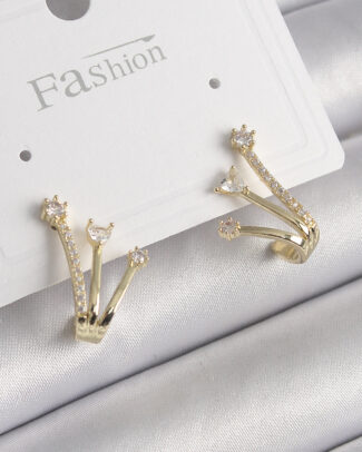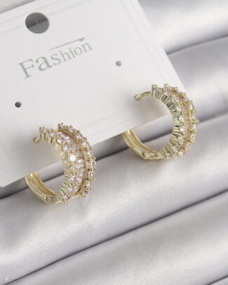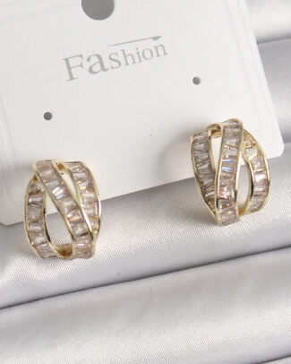 Pirinç Gold Renk Zirkon Taşlı Kadın Küpe