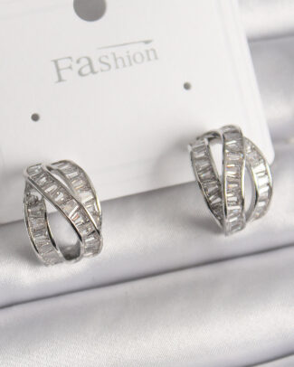 Pirinç Gümüş Renk Zirkon Taşlı Düğüm Halka Model Kadın Küpe