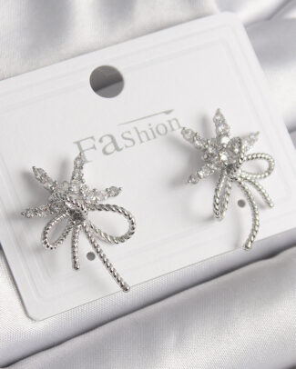 Pirinç Gümüş Renk Zirkon Taşlı Yıldız Düğüm Model Kadın Küpe