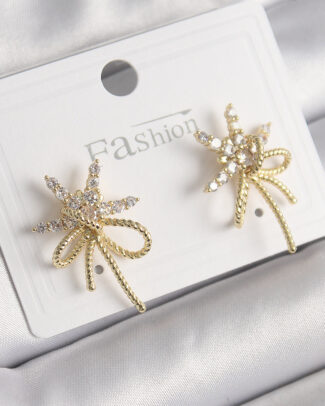 Pirinç Gold Renk Zirkon Taşlı Yıldız Düğüm Model Kadın Küpe