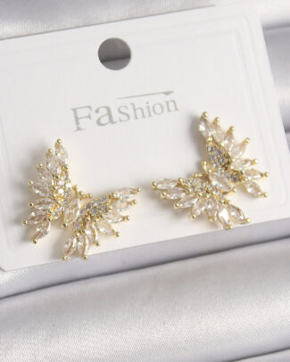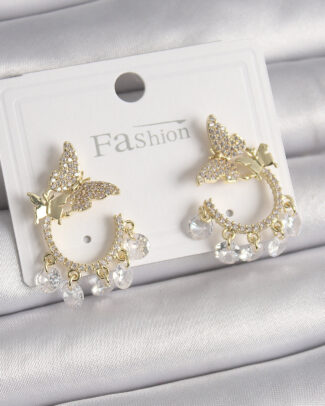 Pirinç Gold Renk Zirkon Taşlı Kelebek Model Kadın Küpe